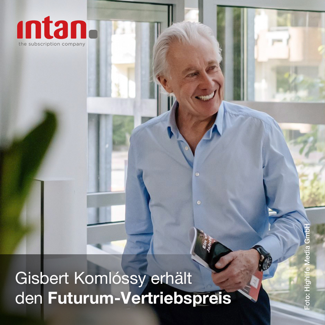 Der Gründer und Inhaber der intan group ist Preisträger des begehrten Futurum-Vertriebspreises. Die Auszeichnung verleihen das Fachmagazin DNV – Der Neue Vertrieb und die Akademie des Medienverbands der freien Presse (MVFP). Mit dem Award werden die Gewinner für ihre herausragenden und innovativen Leistungen im Pressevertrieb geehrt. Gisbert Komlóssy erhält den Preis in der Kategorie „Lebenswerk“.