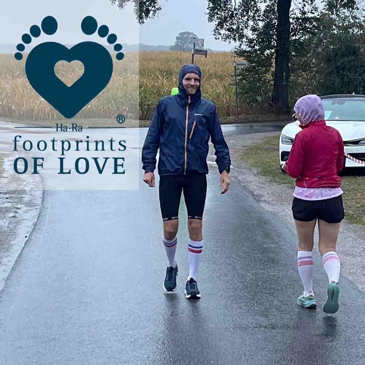 Für Ha-Ra Footprints of Love® waren auch in diesem Jahr wieder Rückwärtslauf Weltmeister Markus Jürgens und seine Frau Jenny angetreten. Trotz des extremen Wetters schafften die beiden über 100 Kilometer.