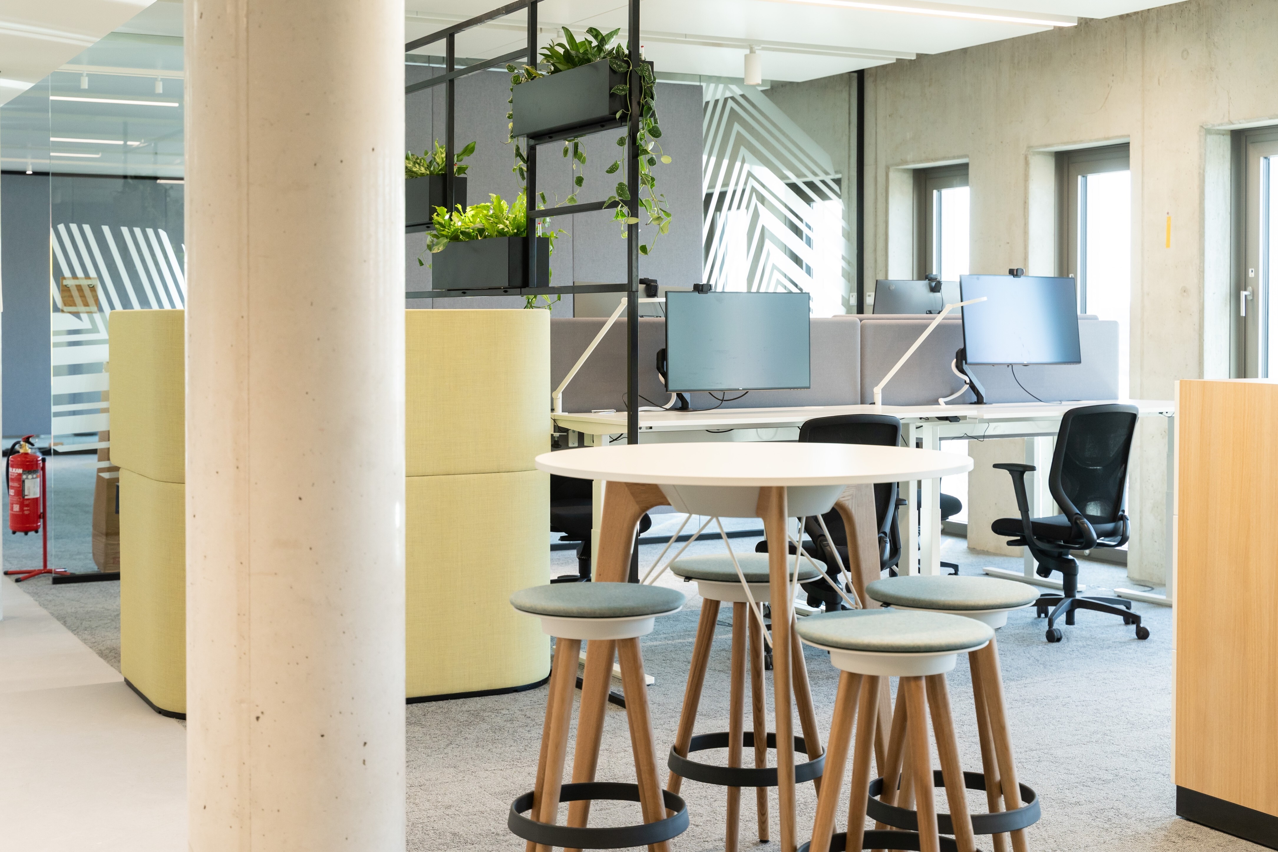Die neuen Arbeitsplätze am Klostertor stellen eine Erweiterung zum mobilen Arbeiten dar, das weiterhin eine Hauptsäule im gelebten Arbeitsmodell des Ökostromanbieters ist. Rund zwei Drittel aller Mitarbeiter*innen finden hier zeitgleich Platz. Die einzelnen Unternehmensbereiche bestimmen selbst, ob und wie häufig sie die neuen Räumlichkeiten in Anspruch nehmen möchten – die bessere Vereinbarkeit von Beruf und Privatleben steht dabei im Vordergrund.