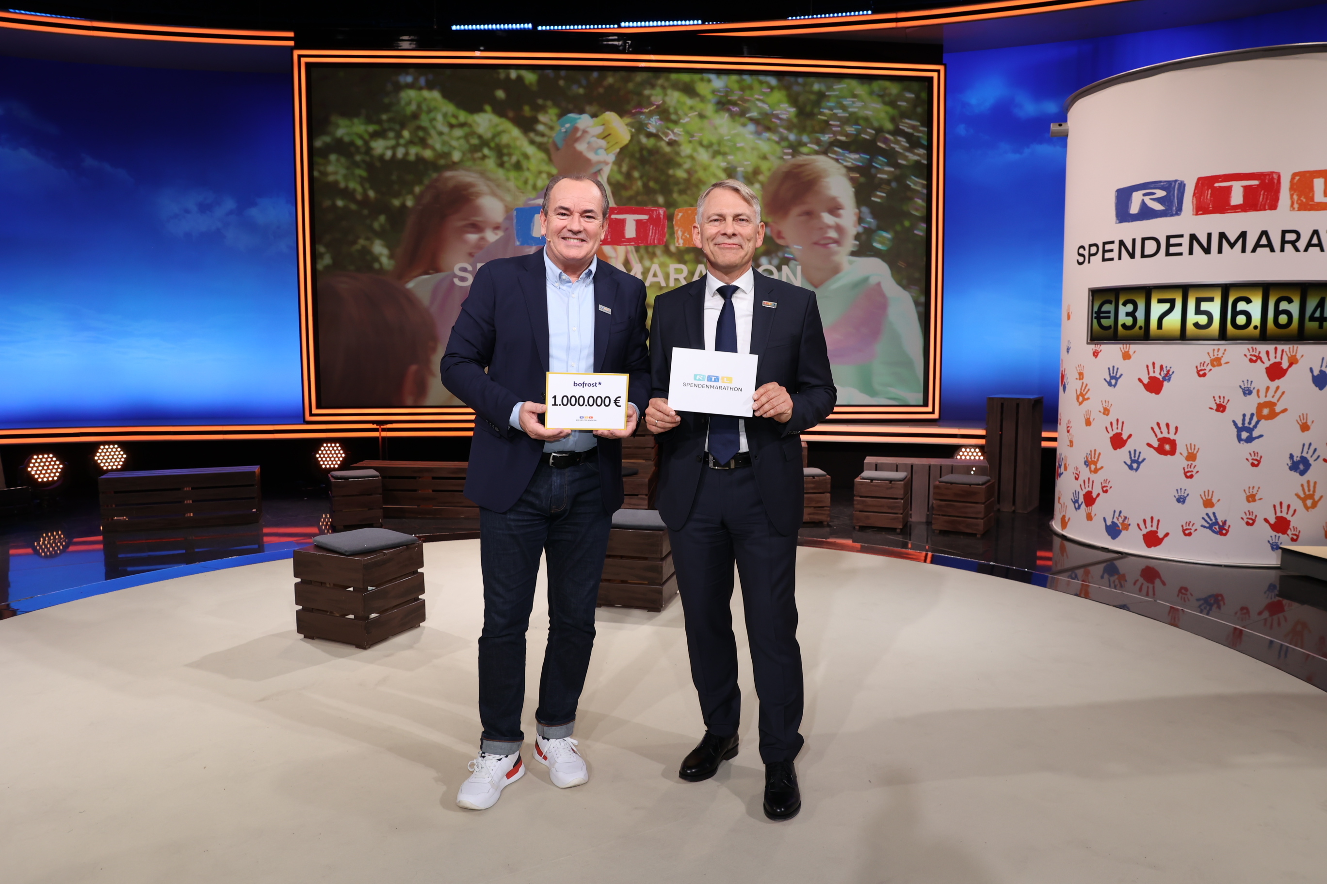und eine Social-Media-Kampagne unter dem #einfachinspirierend. Die Gesamtspende in Höhe von einer Million Euro hat Michael Michaelis, bofrost*Geschäftsführer Vertrieb Deutschland, im Namen aller Kundinnen und Kunden sowie Mitarbeiterinnen und Mitarbeiter beim RTL-Spendenmarathon am 17. November an Moderator Wolfram Kons übergeben. Neben dem Charity-Engagement zugunsten der RTL-Stiftung hatte das Familienunternehmen vom Niederrhein in Kooperation mit der v. Bodelschwinghschen Stiftung Bethel früher im Jahr eine Patenschaft für rund 100 Kinder und Jugendliche aus der Ukraine übernommen.
