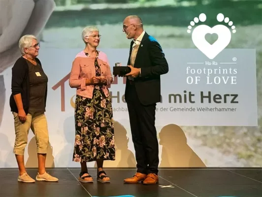 Die stellvertretende Koordinatorin des Vereins, Gertrud Werner, erhielt den Footprints of Love® Award und eine Spende über 1.000 Euro für die Nachbarschaftshilfe der Gemeinde. Mit dem Geld werden Weiterbildungsmaßnahmen des Helferkreises, wie z. B. Fachvorträge oder Erste-Hilfe-Kurse speziell für pflegebedürftige Personen, finanziert.