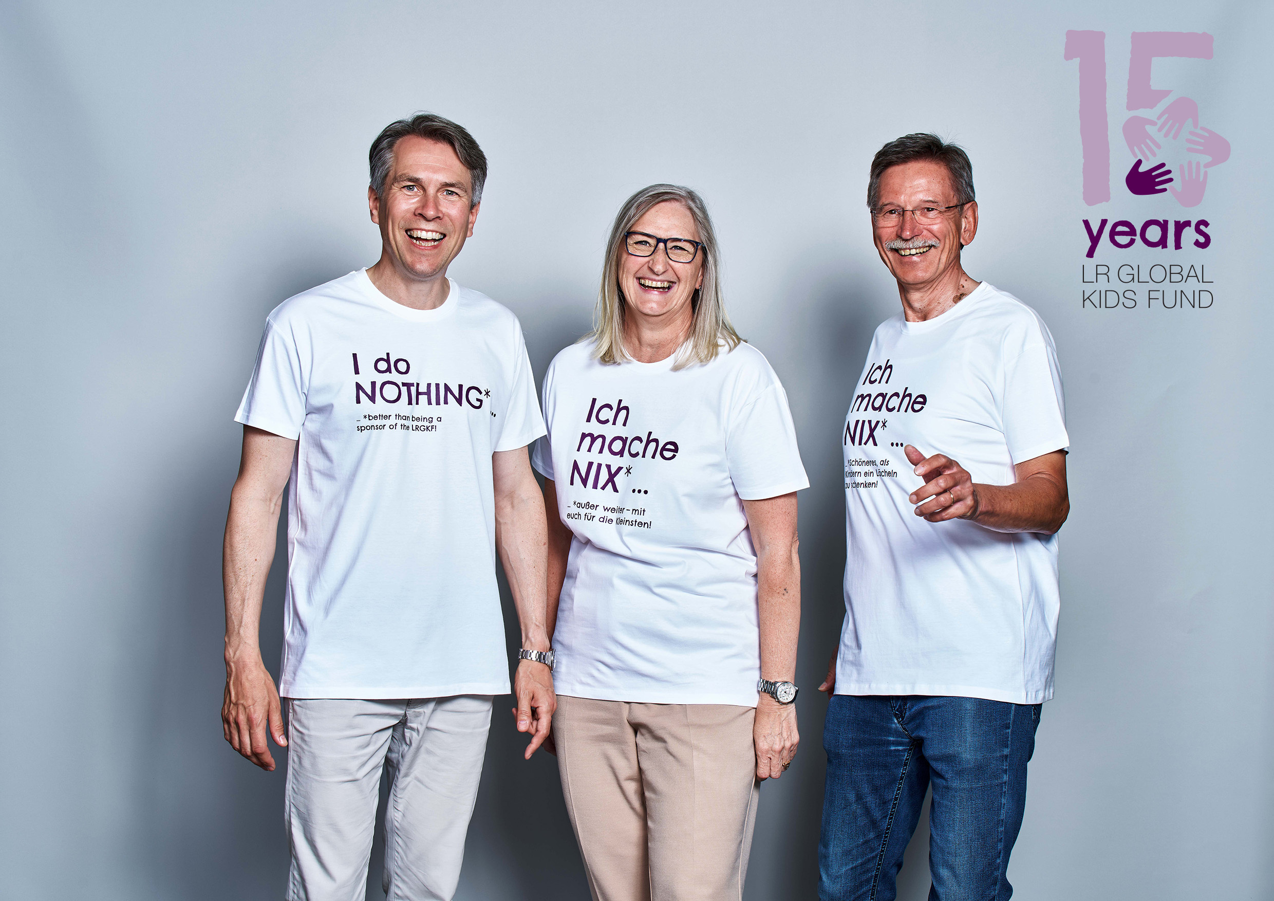 Mit der Jubiläumskampagne „Ich mache nix*...“ zum 15. Geburtstag möchte der Verein weitere Aufmerksamkeit wecken und mit einem Augenzwickern den Fokus auf sein eigenes Engagement lenken. Danach löst sich das Rätsel direkt auf: „Ich mache nix*… Schöneres, als Kindern ein Lächeln zu schenken!“ – dieser und andere Sprüche zieren die T-Shirts der Kampagnen-Protagonisten. „Zahlreiche treue Unterstützer unseres Vereins haben der Kampagne gerne ein Gesicht gegeben. Mit diesem besonderen Einsatz wird es uns sicherlich gelingen, noch mehr Aufmerksamkeit zu bekommen“, freut sich Ueckmann.