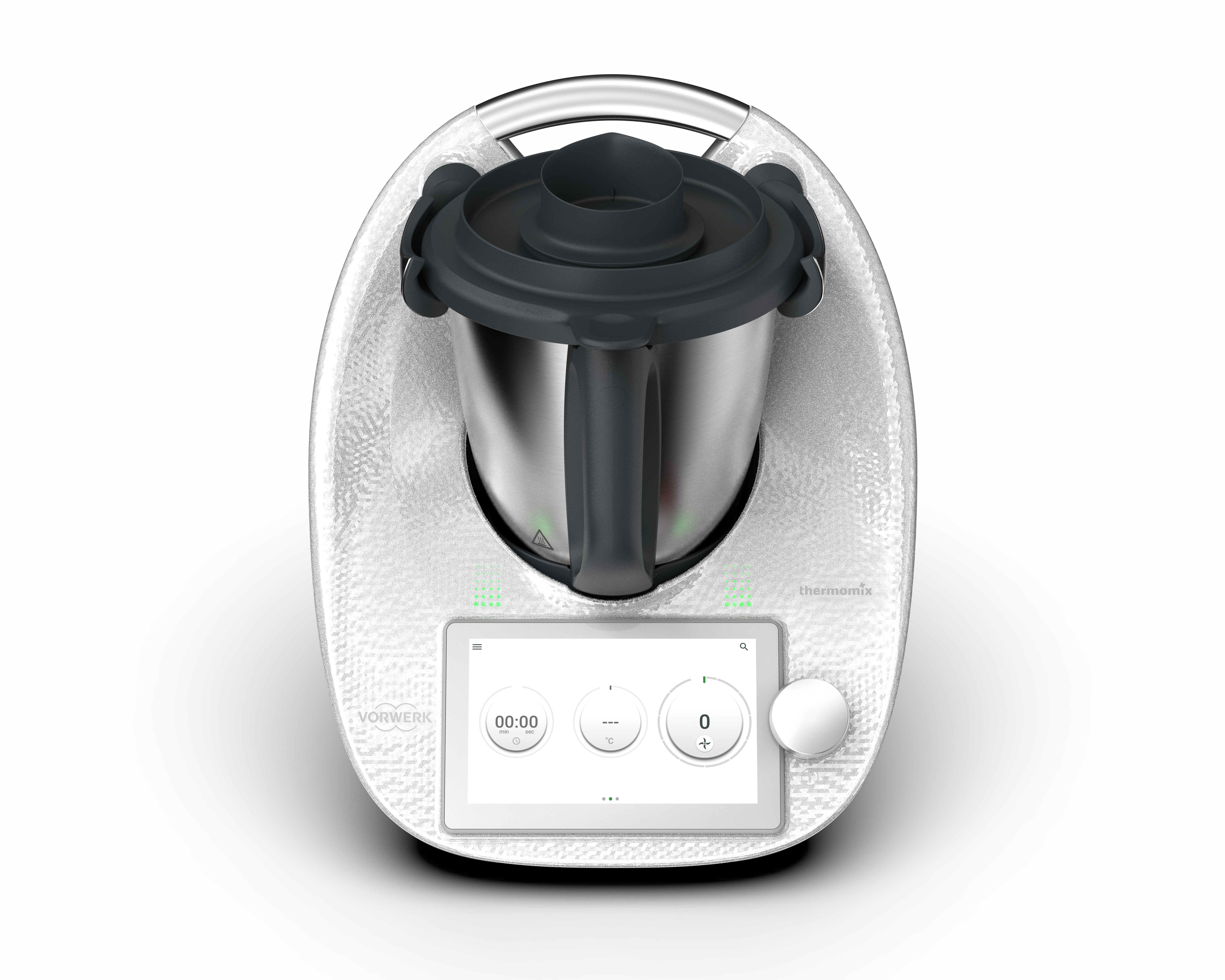 Bei der Special Edition Snow hat sich Vorwerk entschieden, diesen Effekt noch zu akzentuieren, indem die darunterliegende klare Schicht mit eigens für Thermomix angefertigten Silbermetallic-Partikeln angereichert wird. Sie verleiht dem Thermomix eine einzigartige Tiefe, die das facettenreiche Lichtspiel dieser Special Edition erzeugt und auf eine ganz besondere Art und Weise Farben der