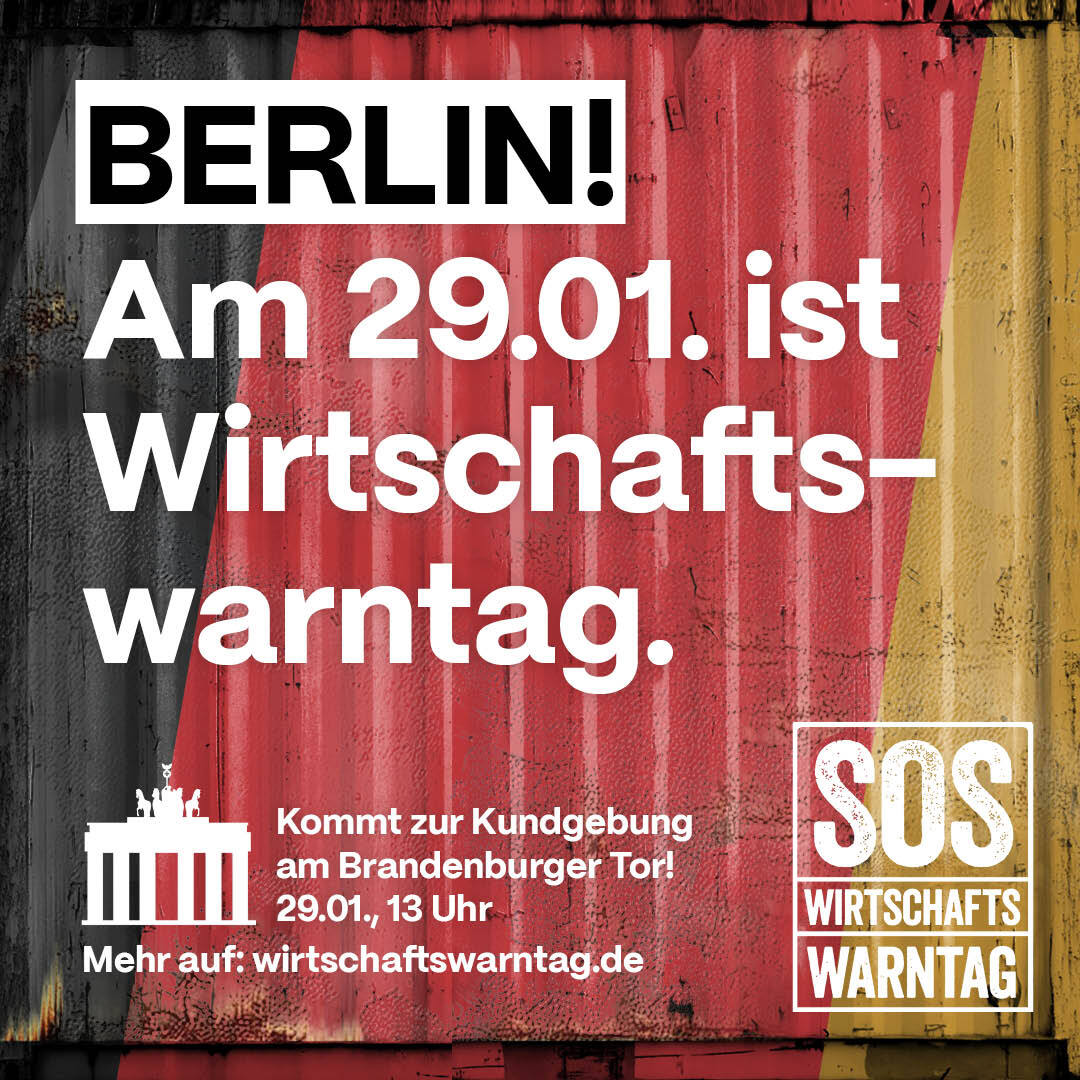 Am 29. Januar 2025 ruft der BDD gemeinsam mit rund 70 Wirtschaftsverbänden und Unternehmerinitiativen zum ersten bundesweiten „Wirtschaftswarntag“ auf. Die Wirtschaft fordert von den Parteien die Stärkung der deutschen Wettbewerbsfähigkeit in den Mittelpunkt des Wahlkampfes zu rücken und eine Wirtschaftswende nach der Bundestagswahl einzuleiten. Geplant ist eine Kundgebung mit mehreren hundert Teilnehmern und Teilnehmerinnen am Brandenburger Tor (13:00 Uhr auf dem Platz des 18. März). Zusätzlich beteiligen sich deutschlandweit regionale Verbände und Unternehmen am Wirtschaftswarntag mit Aktionen vor Ort.
